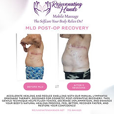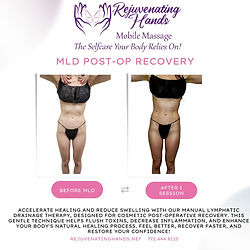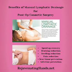 A manual lymphatic massage post-operation can significantly benefit recovery by reducing swelling, bruising, and inflammation, accelerating the healing process, alleviating pain, improving blood circulation, and minimizing the risk of scar tissue formation by facilitating the removal of excess fluid and waste products from the surgical site through the lymphatic system. Also great for non-surgical self care and to help look your best for a photo shoot, wedding, or big occasion.